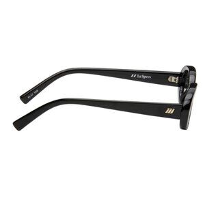 A cult-favorite style with a bold, retro edge. These Le Specs Outta Love sunglasses feature a sleek oval silhouette crafted from Ecozen® polymer, offering lightweight comfort and a sustainable twist. The glossy black frame and gray lenses bring effortless cool to any outfit.