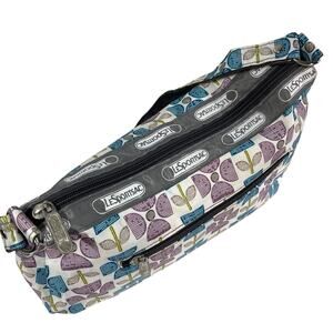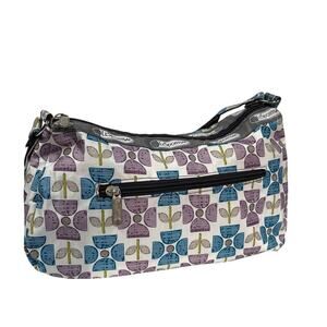Le Sport Sac Floral Shoulder Bag Blue Purple Flower Packable Light Weight