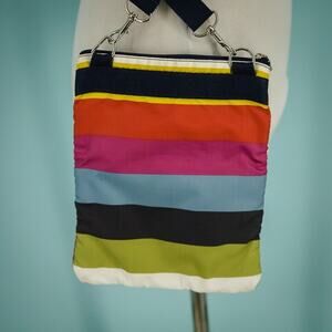 Le Sportsac Rainbow Stripe Three Zip Fabric Crossbody Shoulder Strap Bag Handbag