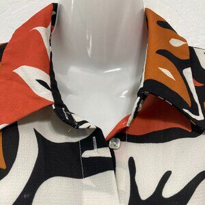 Le Streghe Womens Button up shirt 3/4 sleeves Floral Fall Leaves Italy Size M