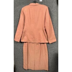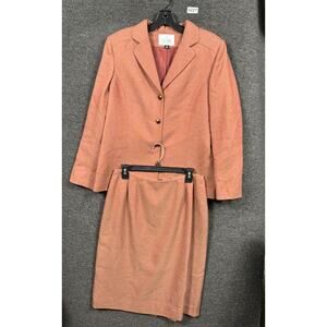 Le Suit 2 Piece Skirt Suit Womens Size 12 Coral Herringbone Casual Office