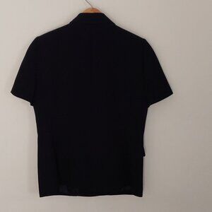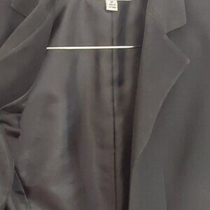 This fully lined Le Suit blazer in deep black offers a professional business style with its structured shoulders and tailored silhouette. Ideal for warmer weather, the short sleeves provide comfort while maintaining a polished appearance.