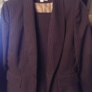 Le Suit Black Pants Suit with Pink Pin Stripe Size 8