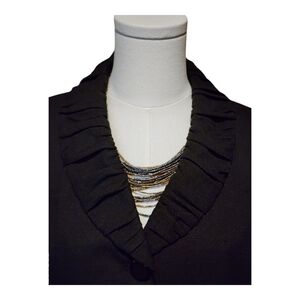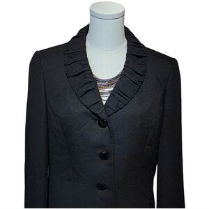 Le Suit Black Ruffle Collar Blazer Jacket 3-Button Career Workwear Classic Sz 8