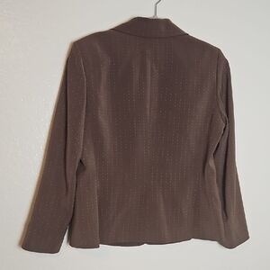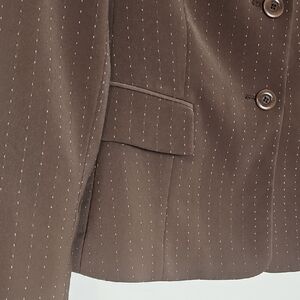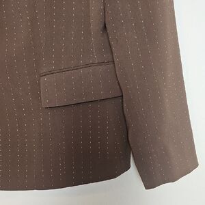Elegant brown blazer with pinstripe pattern. Perfect for office wear. Timeless and chic.