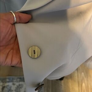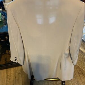Elegant cream blazer with classic design. Features three-button closure. Perfect for professional setting. Whole Set