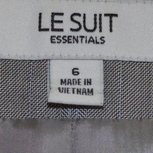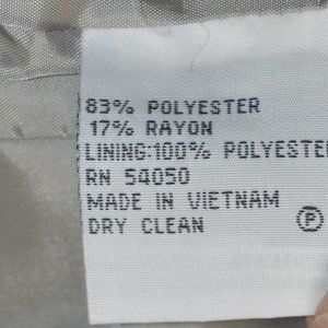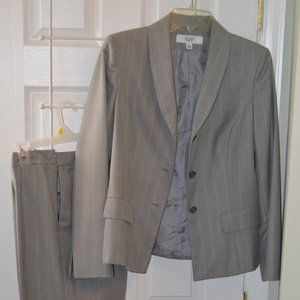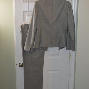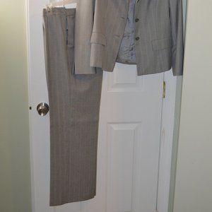Gray pinstripe suit, side zip, excellent condition, polyester/rayon.