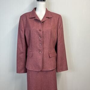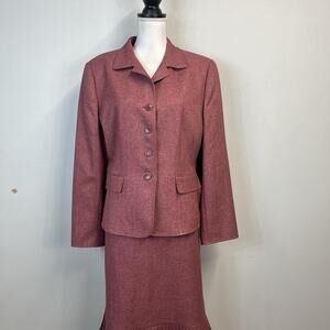 Le Suit Essentials Skirt Suit size 16 Pink Mauve Black Herringbone Career Church