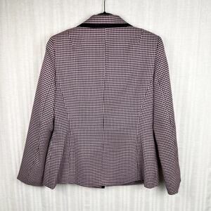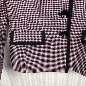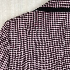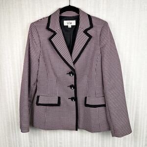 Le Suit Houndstooth Print Pink White Black Trim Flare Blazer Suit Jacket Size 8
