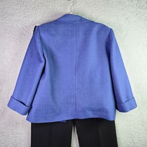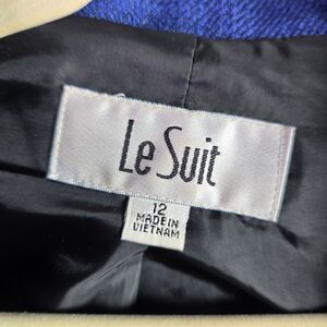 Step out in confidence and comfort with this Le Suit pant suit in a striking cobalt blue and sleek black duo. Both the jacket and pants are fully lined for a luxurious feel. The cropped blazer hugs shoulders perfectly while the black tailored pants ensure a timeless silhouette—ideal for career days, interviews, or business lunches. Make a lasting impression in vivid color and effortless polish. Comfortable and easy to style with favorite blouses or accessories. Condition is excellent, with no visible flaws.