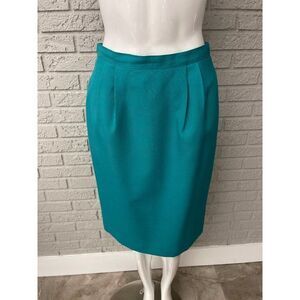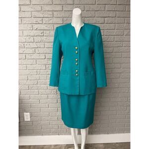 Le Suit Petite Teal Skirt Suit With Gold Tone Button 2 Pcs Set Size 8P