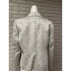 Le Suit Petite Women Long Sleeve Silver Jacquard Blazer Size 10P