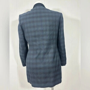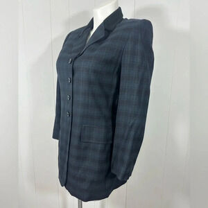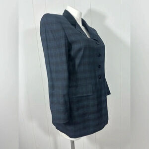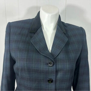 Le Suit Petite Womens Navy Green Plaid Blazer Jacket Career Button Front Sz 14P