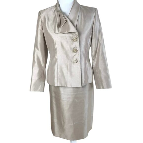 Le Suit Size 4P 2-Piece Skirt Suit w/ Blazer Jacket Champagne Beige Satin Forma
