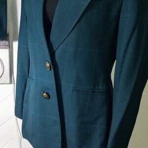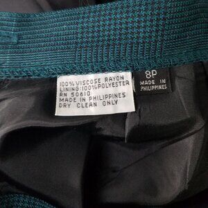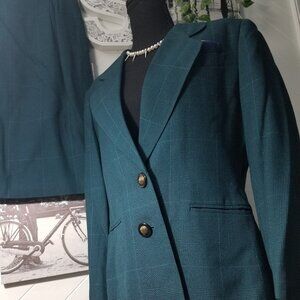 Deep emerald green skirt suit set, plaid pattern, in great pre-owned condition. Size 8P