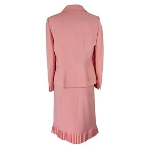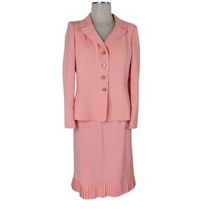 Le Suit Skirt Suit Size 10 Orange Pleated Hem Slit Bracelet Cuffs