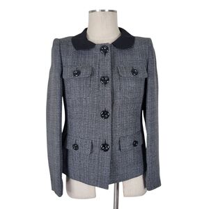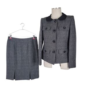 Le Suit Skirt Suit Size 6P Black Textured Pleated Hem Pockets 4 Button Lined