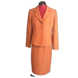 Le Suit Skirt Suit Women's Size 8 Rust Tweed 2-Piece Set Blazer & Skirt