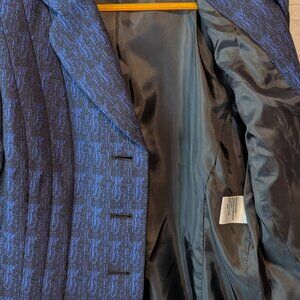 Le Suit Three Button Blazer Skirt & Suit Jacket Blue & Black Petite Size 12P
