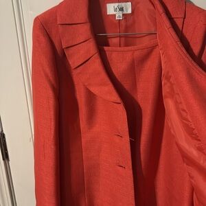 Chic red blazer and skirt ensemble by Le Suit. Ideal for professional settings.