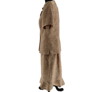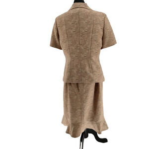 Le Suit Woman's Brown Jacquard Skirt Jacket Suit Size 12 Lined Short Sleeve Slit