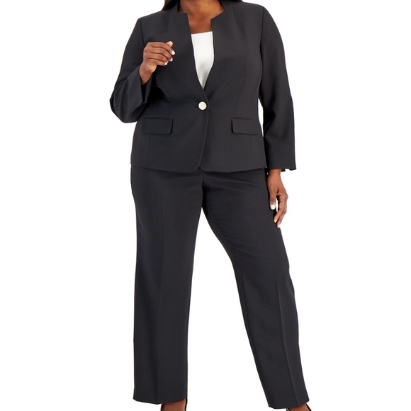 Le Suit Womens 24W Single Button Blazer Slim Fit Pants Suit Black Office Career
