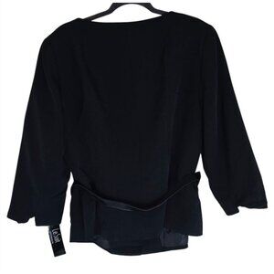 Le Suit Womens Black Jacket With Belt 3/4 Sleeves Size 16W Polyester Blend New W