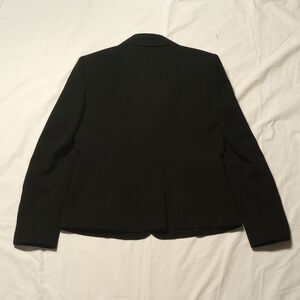This barely worn suit jacket even has shoulder pads! Pit to pit is 18 inches and shoulder to bottom hem is 23 inches.