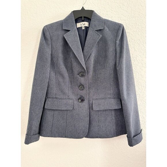 Le Suit Women's Blazer Jacket Size 4 Chambray Blue 3-Buttons Career Officewear