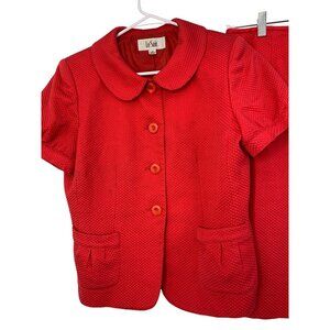 Le Suit Women's Red Textured Jacket & Skirt Set Size 10 Kasper Lined 7343 GUC