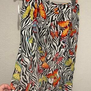 Le Suit Y2K/90s Black and white zebra butterfly print midi skirt