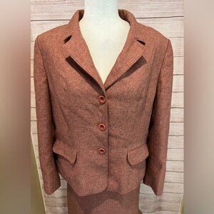 Le Suit size 16 rust tweed pleated around hemline skirt suit. This is an absolutely beautiful suit that is fully lined. The jacket measures 22 inches pit to pit and 23 inches long. The skirt measures a 34 inch waist and 26.5 inches long. Smoke free home.