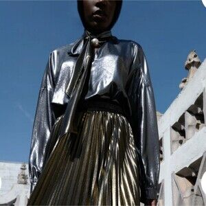 Le Superbe Costes Tie Front Metallic Vintage Gold Pewter Blouse Women's Medium