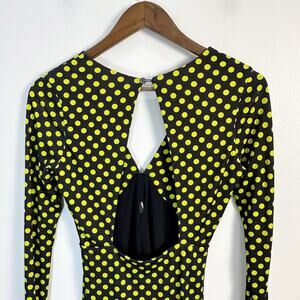 Le Superbe Elastica Black Yellow Neon Polka Jersey Mini Dress Cut Out Back XS
