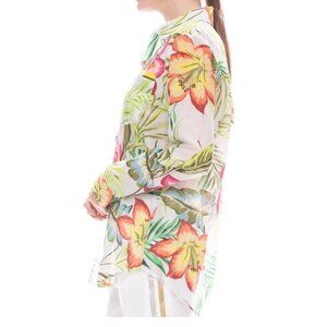 Le Superbe, California cool, laid-back luxury, bold florals, statement shirt, oversized button-down, sheer layering piece, tropical vibes, west coast chic, vacation-ready, warm weather essential, botanical print, maximalist style, feminine tailoring, modern resort wear, floral obsession, effortless elegance, everyday statement, casual glam, colorful confidence.