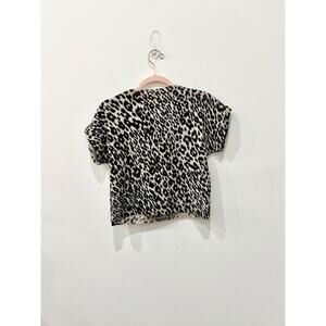 Le Superbe Frances Cropped Short Sleeve Leopard Sweater Tee Sand/Black Small