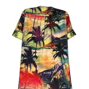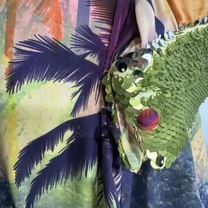 Le Superbe Palm Tree Sunset Maxi Dress Sequin Trim Hollywood Size S