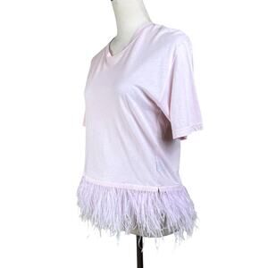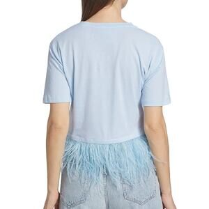 Crafted of cotton, this glamorous tee by Le Superbe flaunts a crewneck and short sleeves trimmed with tonal feathers.