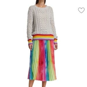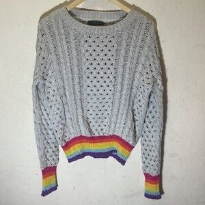 Designed with a rainbow trim, this knitted sweater makes a bold statement.