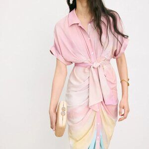 Note from Seller: Pre-loved from Rent the Runway. Two chipped buttons, stitch holding the sleeve down has popped and needs a microstitch to hold it in place. Pilling on collar. Missing Belt. Small stain on back.
