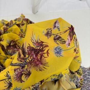 This Le Superbe chiffon kimono-style duster features a vibrant tropical print with a flowy, lightly sheer silhouette. Can be worn open or tied at the waist, it works beautifully as a resort layer, swim coverup, or statement topper. The high-low hem and raw frayed trim add unique movement and texture.