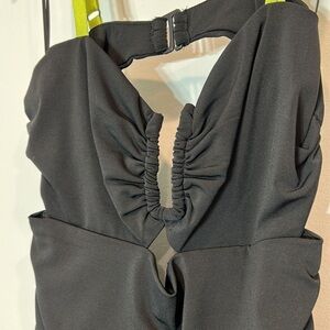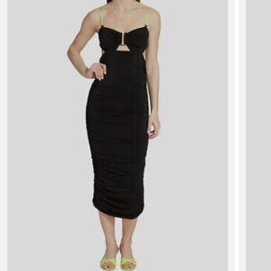 Le Superbe Women's Black Cut-Out Side Ruched Midi Bodycon Dress before sunrise M