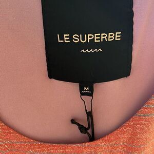 Le Superbe Womens Medium Baccara Metallic Tank Dress Ruched Sides Blue Purple Pink Striped NWT