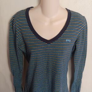 Le Tigre Blue Yellow Stripe V-Neck Sweater Size Women's Large