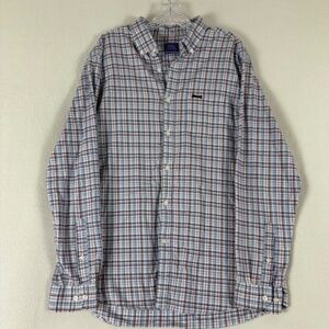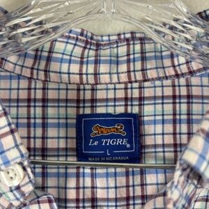 Le Tigre men’s Long Sleeve Button Down White with Red/Blue Stripes Size L