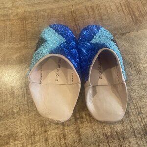 Le Toit de La Lune Handmade Leather Slippers Girls Size 8 Sequins Blue