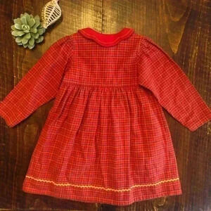 Le Top | Red Plaid Flannel Button Down Dress, Felt & Embroidery Squirrel & Tree