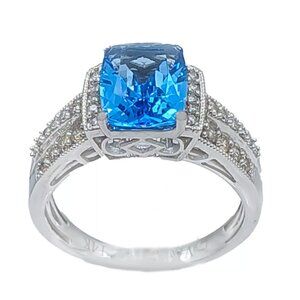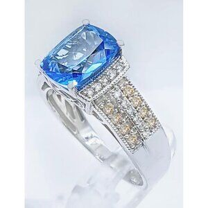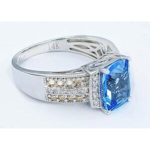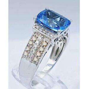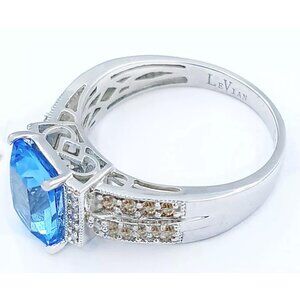 Le Vian Natural 2.0 Ct Blue Topaz & Diamond Ring 14k White Gold
