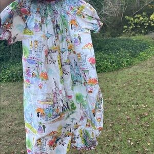 Le Za Me smocked romper size 18 months. Very cute Paris themed printed romper. Buttoned bottom