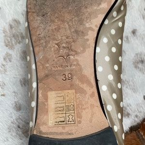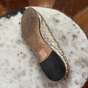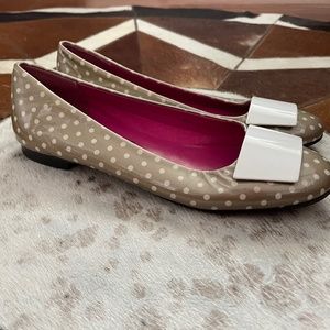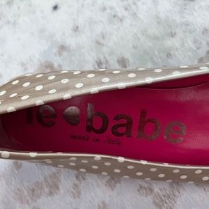 These polka dot flats from le babe feature white detail in the front, and a white polka dot pattern throughout.